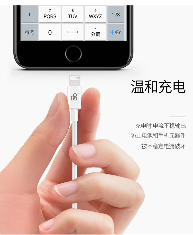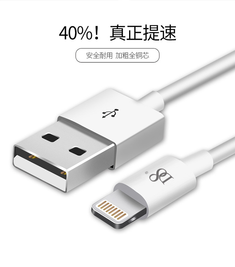 D8 原装数据线头 苹果充电线MFI认证手机线 快充 适用iphone 7/8/X/6s/Plus 1米白色